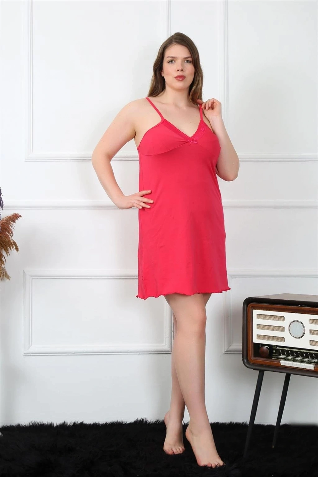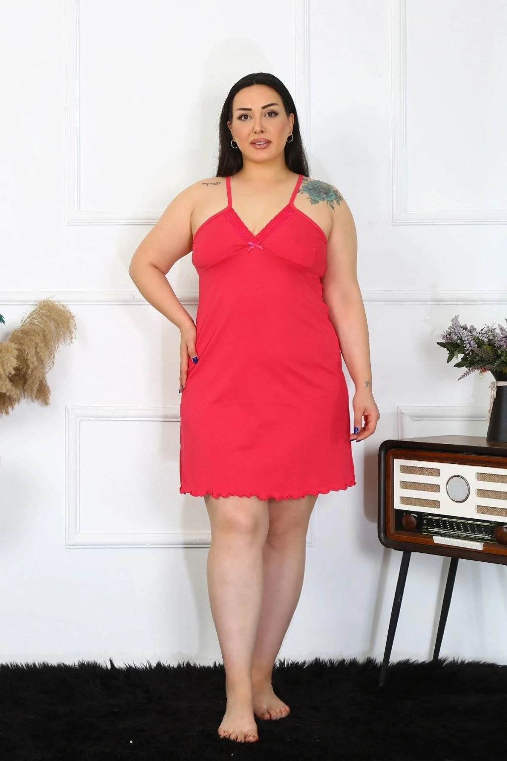 Kadın Pamuklu İp Askılı Büyük Beden Gecelik