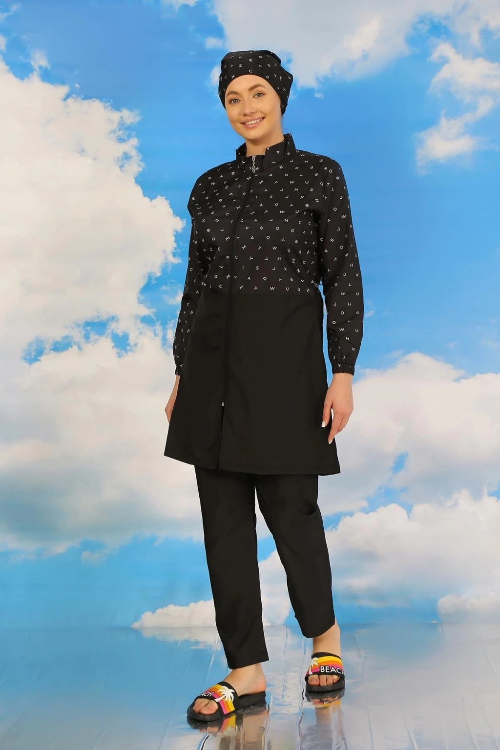 Çamaşır Kenti'nin Kadın Pantolonlu Desenli Tam Tesettür Mayo Siyah modeli ile plajda şıklığı ve rahatlığı bir arada yaşayabilirsiniz.
