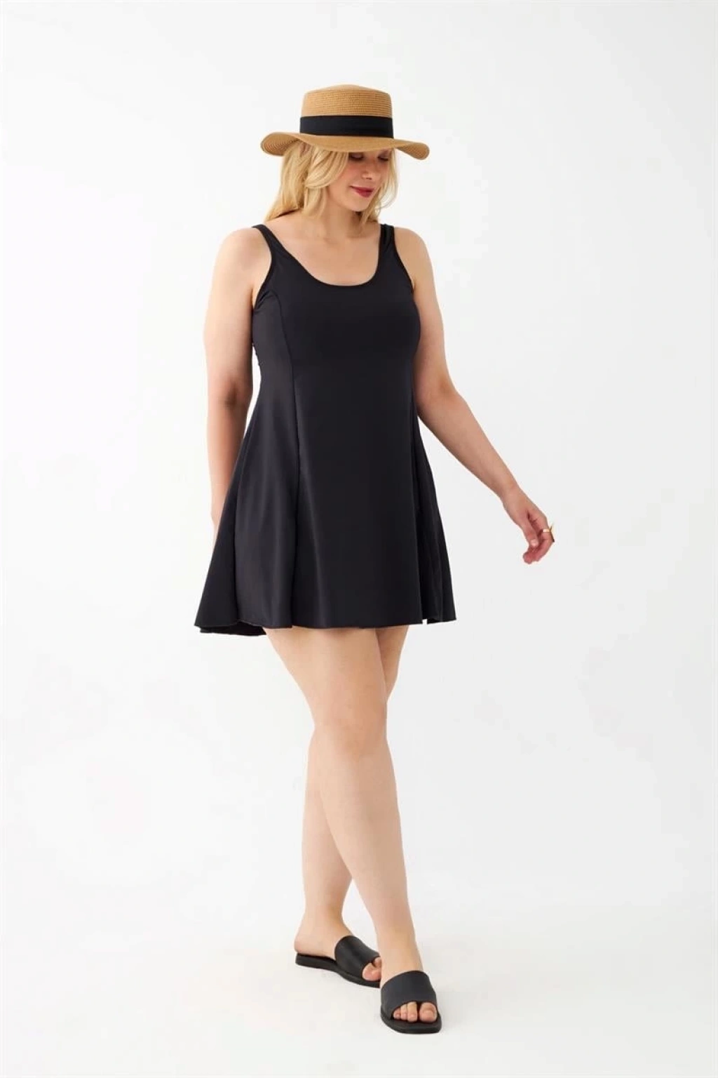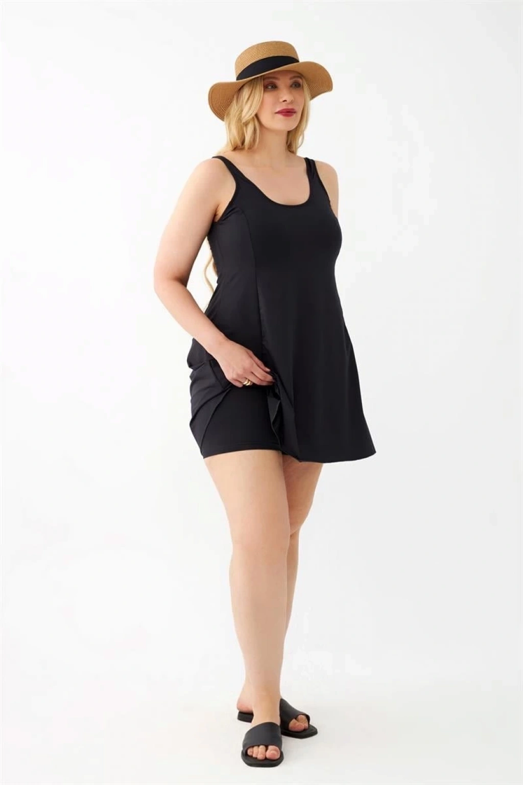 Büyük beden kadınların plajda şıklığından ödün vermeden rahatça güneşlenmeleri için tasarlanmış, Çamaşır Kenti marka siyah düz elbise mayo ile şıklığı ve konforu bir arada yaşayacaksınız. Kaliteli kumaşı ve geniş beden seçenekleri ile her vücut tipine uyum sağlayan bu mayo, zarif çiçek desenli askılı geceliğiyle tamamlanmıştır. Plajda ve havuzda özgürce hareket etmenizi sağlayacak olan bu mayo, güneşlenirken şıklığınızdan ödün vermek istemeyen kadınların vazgeçilmezi olmaya aday!