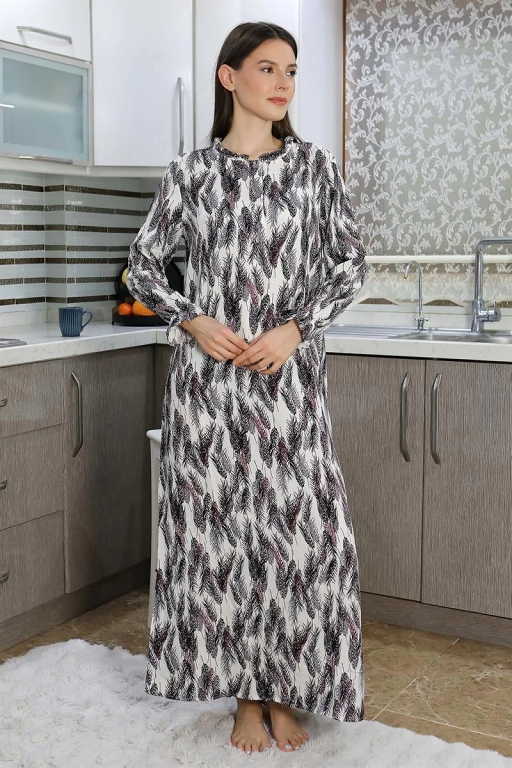 Uzun Kol Penye Gecelik Ev Elbisesi