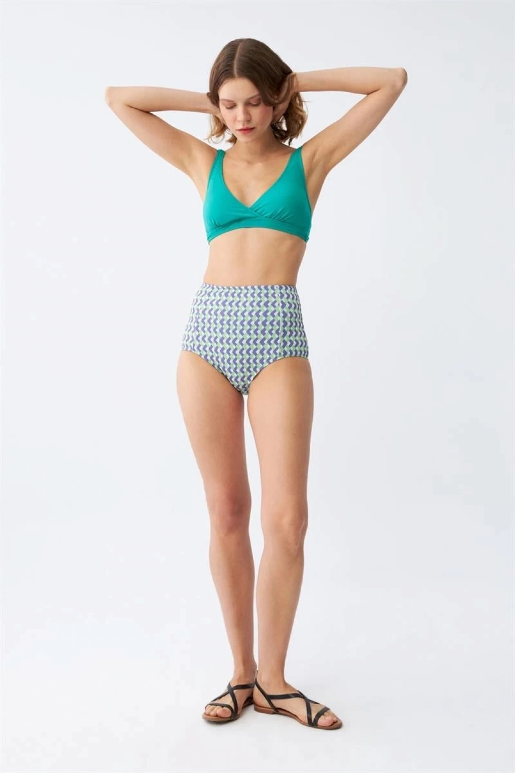 Çamaşır Kenti'nin özel tasarımı olan Kadın Yeşil Pedli Geometrik Desenli Yüksek Bel Bikini Takımı, plajın ve havuzun şıklık simgesi olmaya aday!