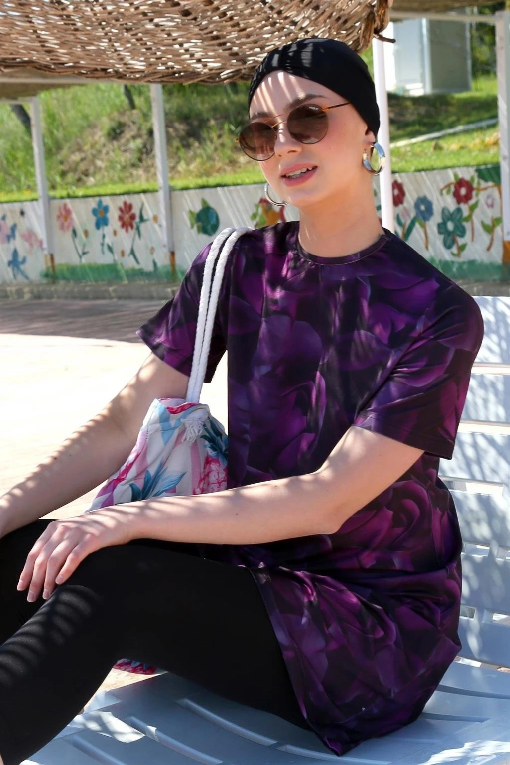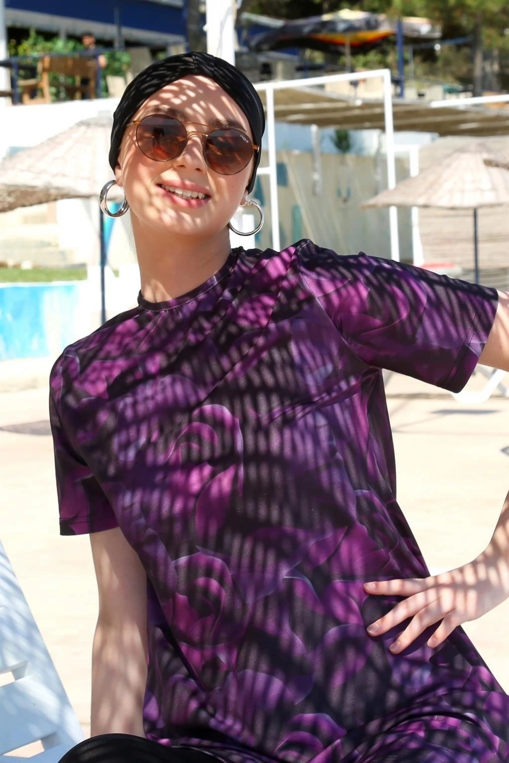 Çamaşır Kenti Kısa Kol Güllü Yarım Tesettür Mayo, plajda hem şık hem de rahat hissetmek isteyen kadınlar için mükemmel bir seçenektir.