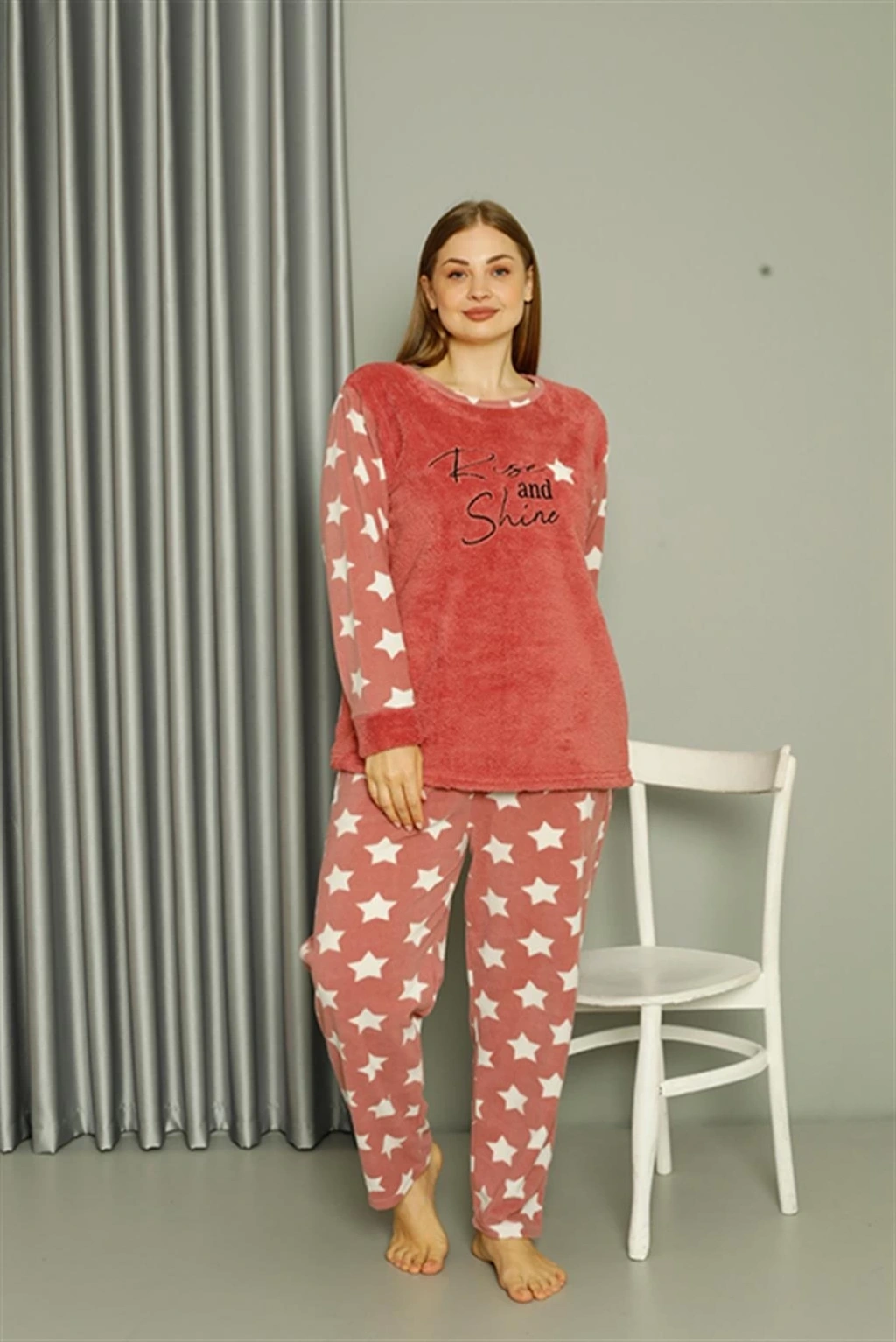 - Uzun kollu üstü ve uzun pantolonuyla tam bir pijama takımıdır.