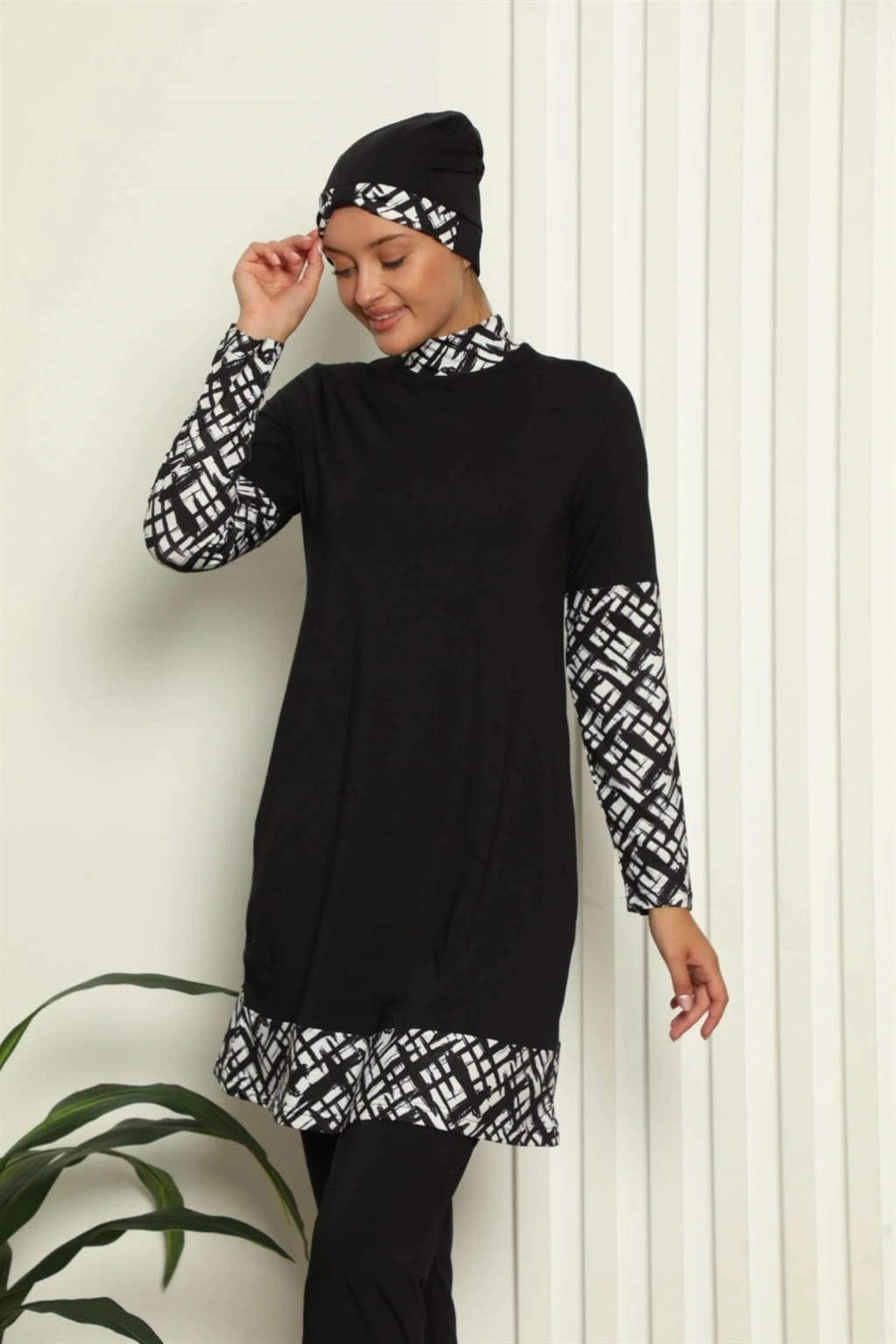 Çamaşır Kenti'nin şıklık ve rahatlığı bir arada sunan Tam Tesettür Dijital Desenli Mayo Siyah, plajda ya da havuzda şıklığından ödün vermek istemeyen kadınların tercihi oluyor.