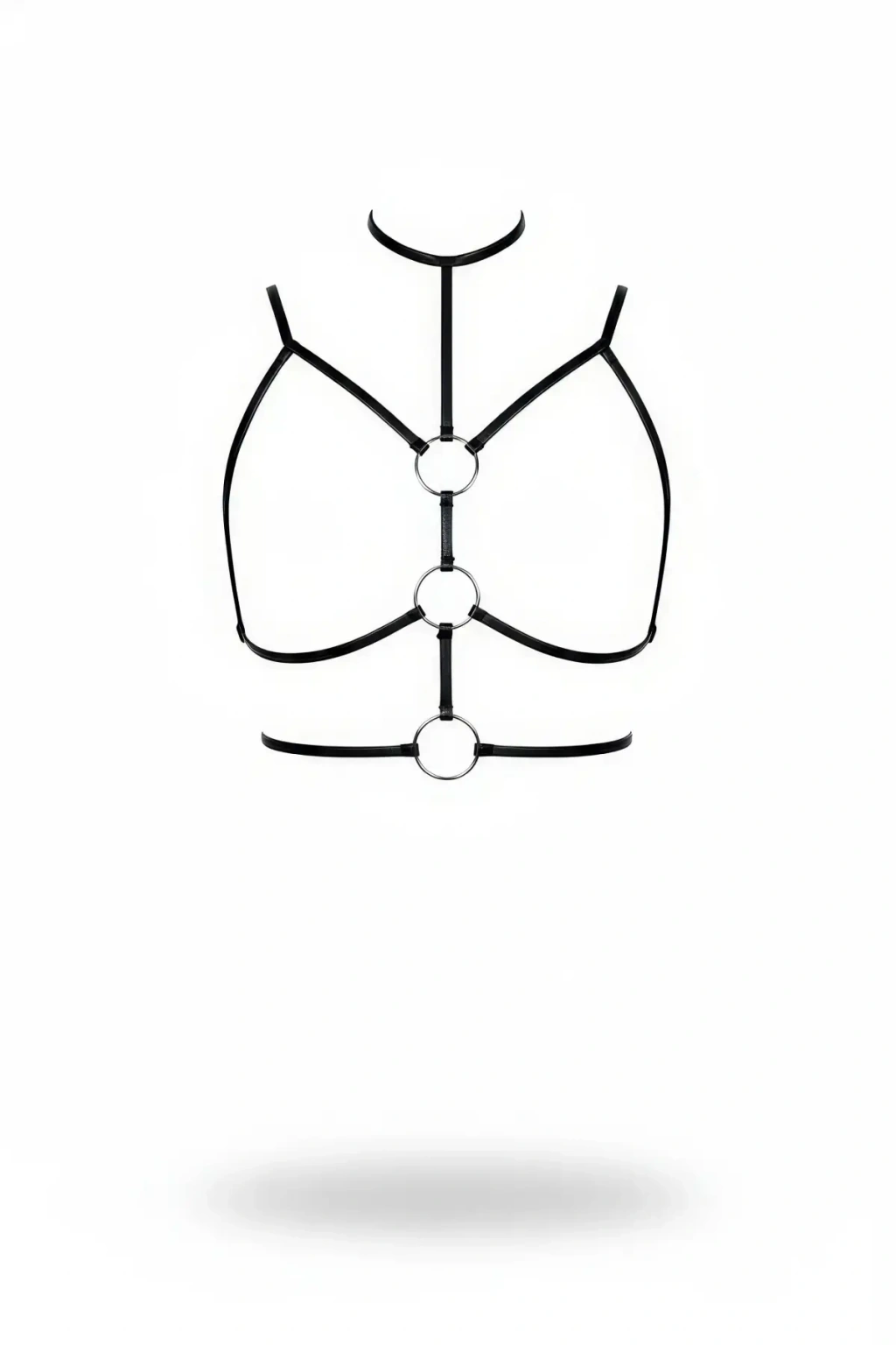 Siyah Göğüs Harness Suni Deri Halka Detaylı Boyunluklu - Brf184