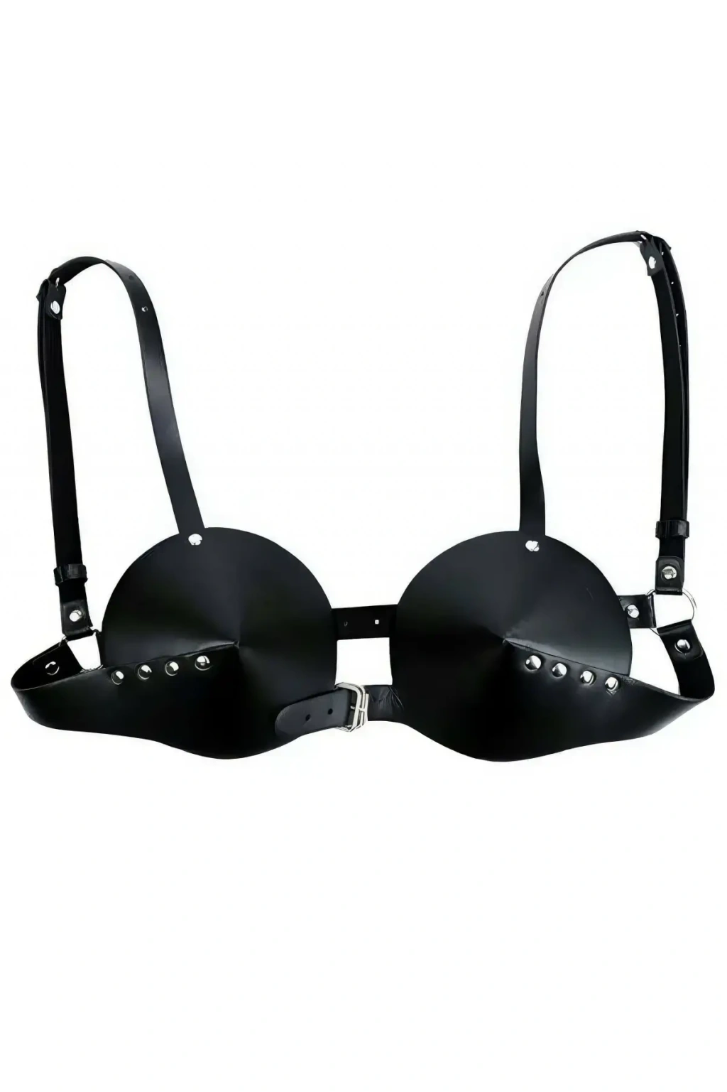 Siyah Göğüs Harness Zımbalı Konik Kaplı Deri - Brf250