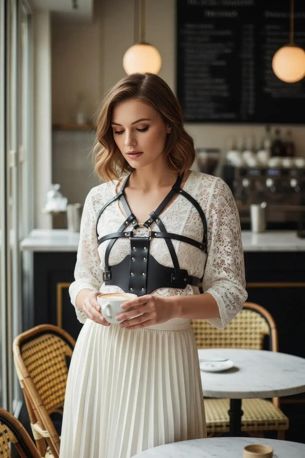 Siyah Kadın Kemer Suni Deri Zımbalı Vücut Aksesuarı - Brf1146