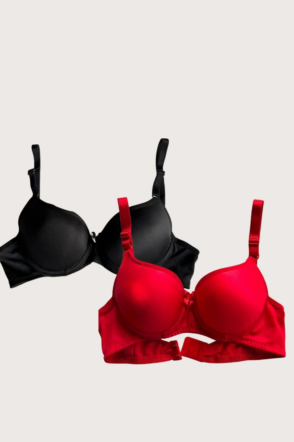 Siyah-kırmızı 2'li Mikro Kumaş İçi Boş Balenli Günlük Desteksiz Sütyen