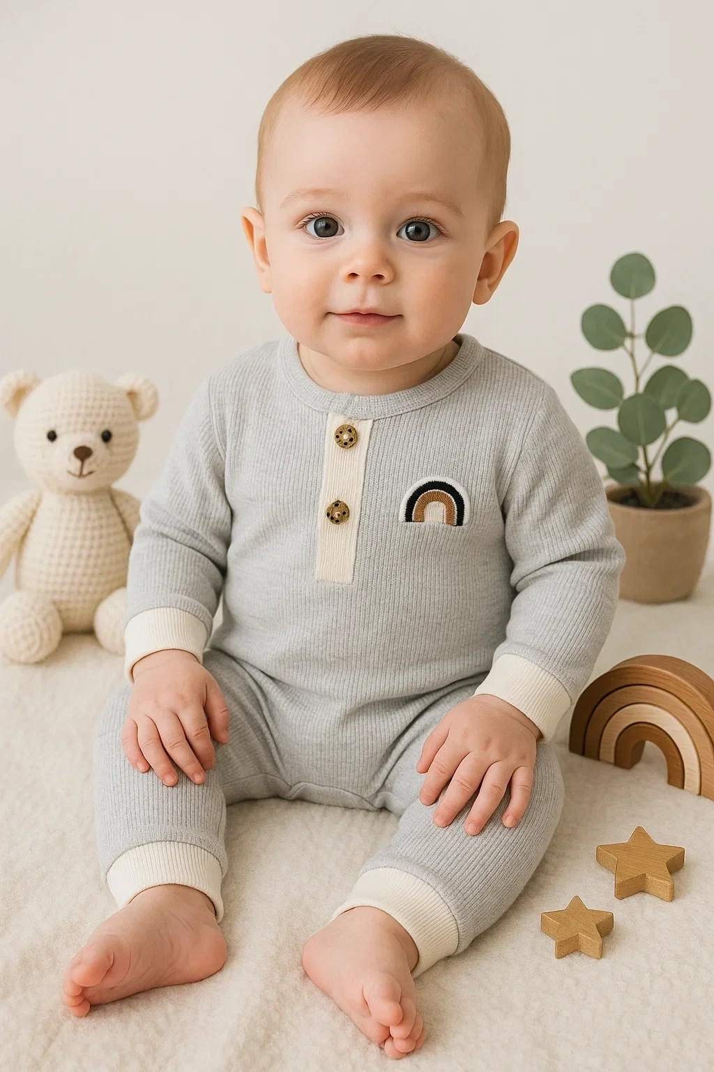 Gökkuşağı Nakışlı Erkek Bebek Tulumu
