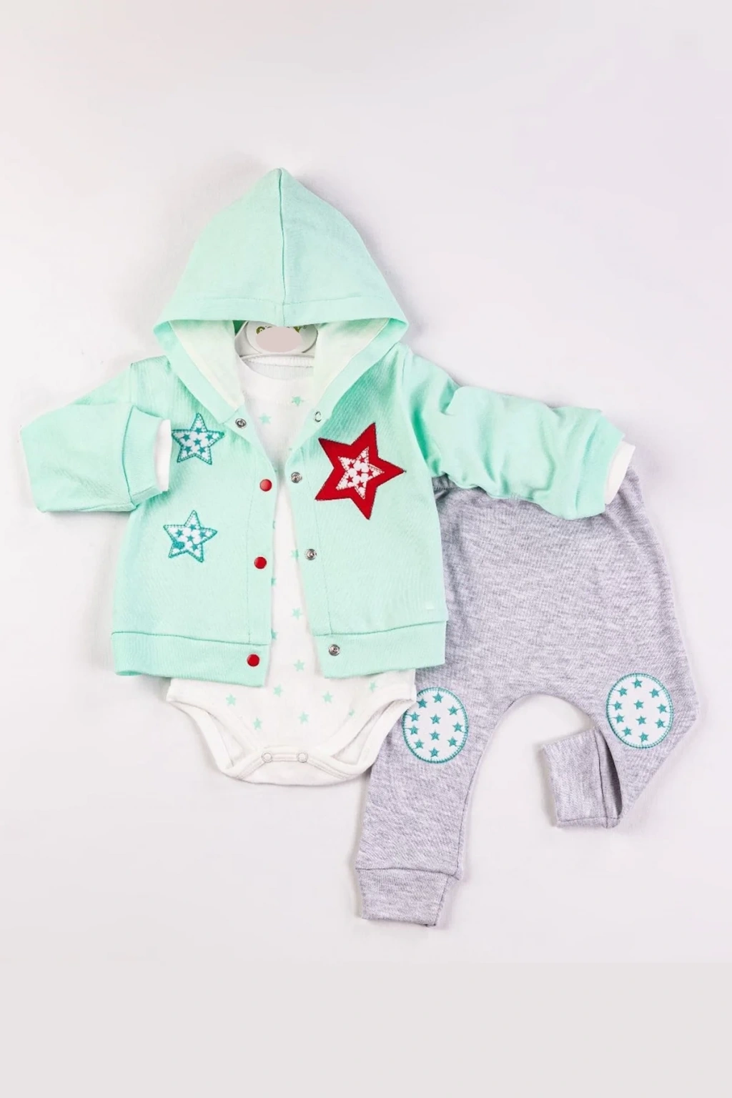 Yıldız Nakışlı Kapişonlu Kız Bebek Takımı